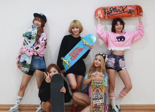 " <#MINX #DaMi> Temos novos skates Minx !!! Um skate Minx ~~~ por pessoa !! Será que ficamos bonitas hoje ?? Por favor olhe o 'The Show' de hoje !!! "